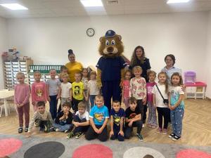 Mundurowi uczestniczyli w spotkaniach z przedszkolakami. Spotkania miały charakter profilaktyczny i poświęcone były tematyce bezpieczeństwa – zarówno na drodze, jak i w miejscu zamieszkania. Podczas odwiedzin towarzyszył funkcjonariuszom Komisarz Lew.