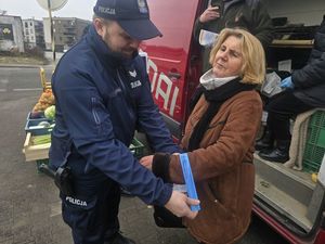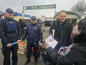 Policjanci i radni miejscy łączą siły, by edukować seniorów. Akcja profilaktyczna na targowisku w Oleśnicy