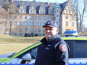 Funkcjonariusz asp. Robert Kowalski pełni służbę na terenie Miasta Oleśnica.