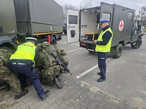 Istotnym elementem szkolenia była również symulacja zdarzenia drogowego z udziałem pojazdu wojskowego. Policjanci oleśnickiej drogówki otrzymali inscenizowane zgłoszenie o wypadku, po czym niezwłocznie udali się na miejsce. Na miejscu, podjęli czynności związane z obsługą zdarzenia tak jak odbywa się to w przy wypadkach drogowych. W tej sytuacji elementem podwyższającym ryzyko były pojazdy, które przewożą broń i amunicję. Takie sceny pozwalają na praktyczne sprawdzenie gotowości do reagowania w sytuacjach nagłych i wymagających szybkiej koordynacji.